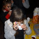 Die nächtliche Suche nach Süßigkeiten führte uns letztlich in die Kreuzstraße, wo wir mit Kinderpunsch und süßem Gebäck empfangen wurden. Danach hatte der Spuk ein Ende, so dass wir mit Süßigkeiten bepackt den Heimweg antreten konnten.