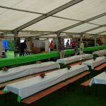 Das Blumenfest wurde am Samstagnachmittag mit dem Fassanstich durch Bürgermeister Walter Heiler eröffnet.. Bis zum Abend war das Zelt gefüllt, im späteren Verlauf wurde an der Bar gefeiert, wobei wir mit den Parallelveranstaltungen in der Region konkurrieren mussten. Der im wahrsten Sinne des Wortes sonnige Sonntag begann mit dem Frühschoppen und ging über zum Mittagessen sowie gemütlichem Beisammensein am Nachmittag und Abend. Bei erneut herrlichem Wetter konnten wir die zahlreichen Gäste am Montagmorgen mit Wellfleisch, Rippchen und Leberknödel versorgen. Nachdem auch am Abend das Zelt voll besetzt war, wurde an der Bar fröhlich und friedlich bis nach Mitternacht gefeiert.