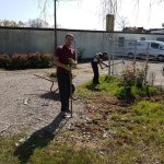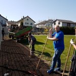 Entlang des im letzten Jahr errichteten Zauns setzten wir wilden Wein zur optischen Aufwertung und bereiteten den noch unbewachsenen Boden für die bevorstehende Rasenaussaat vor.