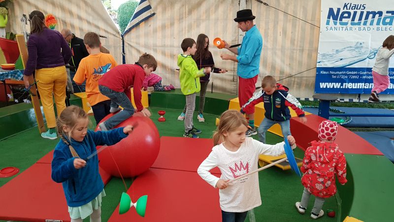 Ebenso die Kollekte am Sonntagmorgen beim gemeinsamen Gottesdienst im Festzelt. Dabei zeigte sich auch, dass das Blumenfest in Kirrlach ein willkommenes Ausflugsziel für die ganze Familie sein kann. Nach dem von den „Freunden der Volksmusik“ begleiteten Mittagessen wurde der erstmals durchgeführte Wirsol-Familientag zum beliebten Kinder-Spielfest. Dort konnten sich die Kids in der Hüpfburg, auf der Riesenrutsche oder beim Mitmachzirkus Fireheadz austoben. Nachmittags sorgten einheimische Chöre sowie die Stimmungsmacher „Tobbmaster Fitsch and the fabulous Fernando Horns“ für ein weiteres Highlight. Zum Festausklang war die Bevölkerung am Montag zum Frühschoppen sowie der musikalischen Unterhaltung durch die Freunde der Volksmusik eingeladen.